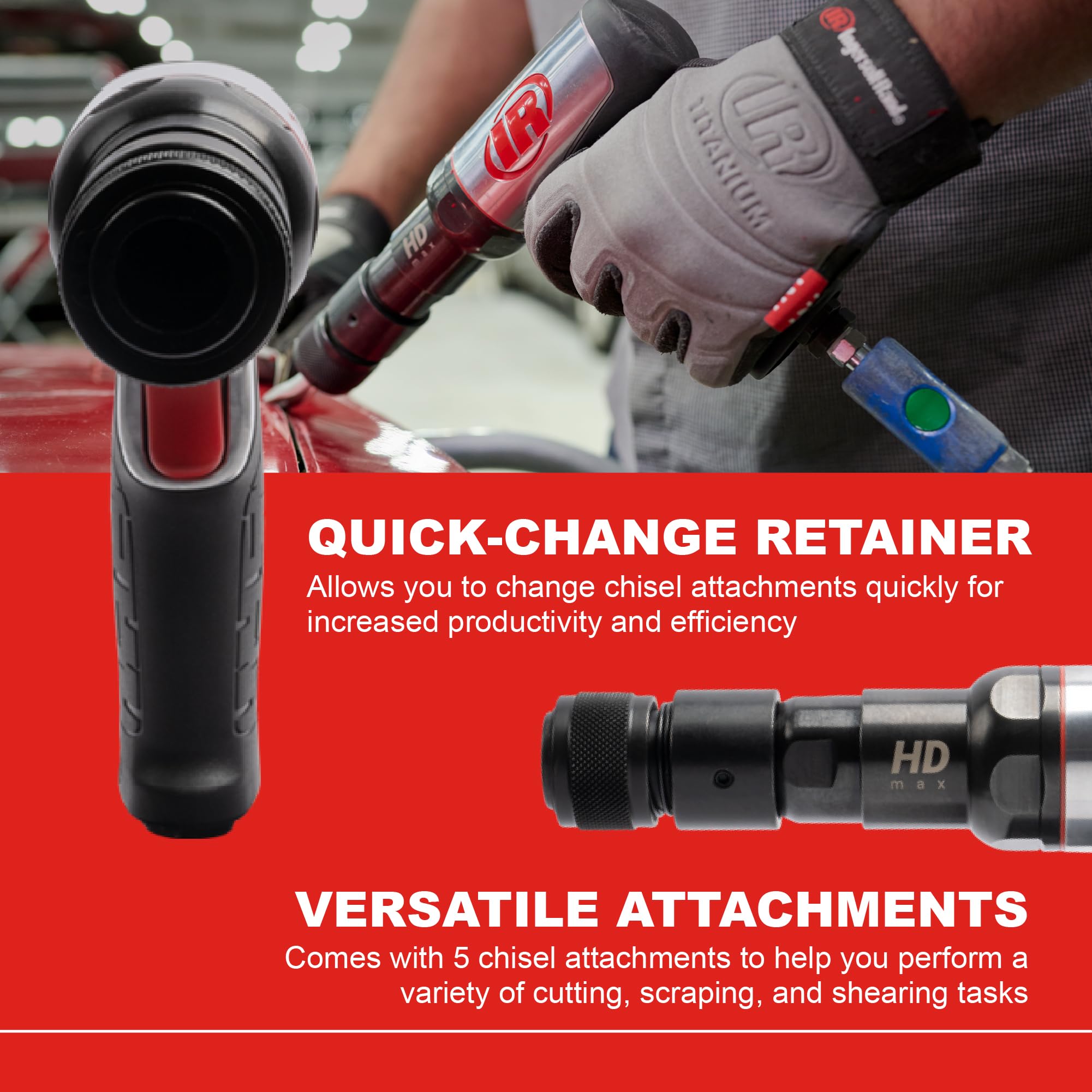 Ingersoll Rand 135MAXK Vibration Reduced Quick-Change Air Hammer 5-Piece Chisel Set, 2,600 BPM, 3" Stroke, Round Shank