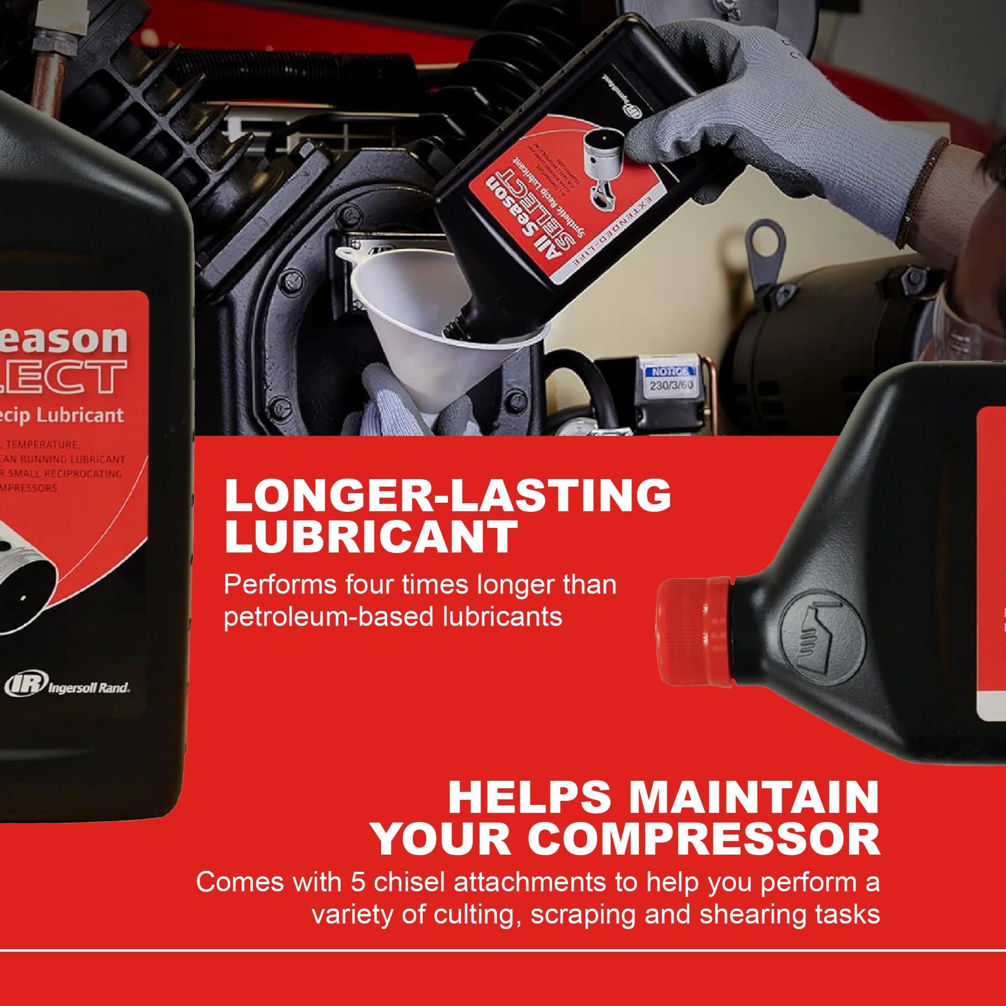 - All Season Select lubricant is a synthetic, all-temperature blend designed to maintain optimal performance of any reciprocating compressor