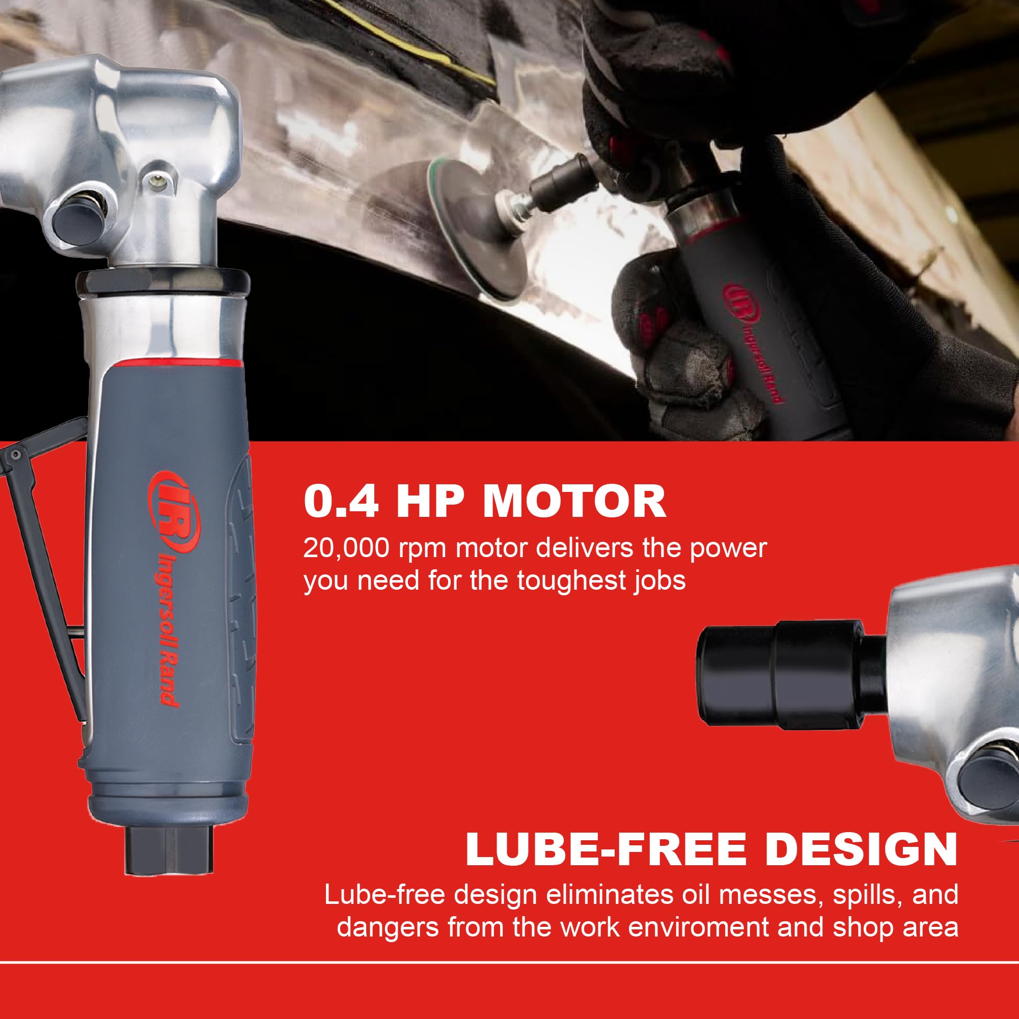 Ingersoll Rand 5102MAX Air Die Grinder – Right Angle, Ergonomic Grip, 0.4 HP and 20,000 RPM Motor, Lightweight Tool, Spindle Lock, Grey